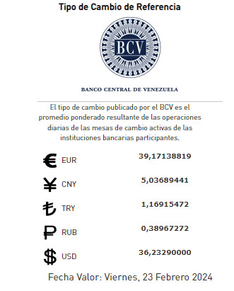 Conoce el monto del dólar en Venezuela para este viernes. El Banco Central de Venezuela cierra la referencia del dólar este 22 de febrero de 2024. La página web venezolana indicó que se mantiene estable este día, tras el cierre de la subasta.