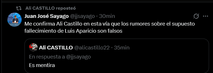 Todos los comentarios fueron retuiteados por Ali Castillo. Su intención busca desmentir a medios de comunicación de, sin corroborar, publicaron la falsa información.
