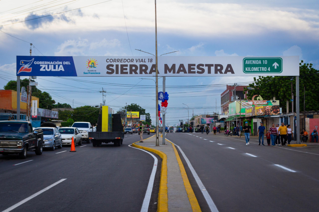 Nota de Prensa – Caracas, 27 de noviembre de 2024-. El Gobernador del Zulia, Manuel Rosales Guerrero, inauguró la tarde noche de este martes, 26 de noviembre, los trabajos de construcción, recuperación y modernización del corredor vial 18 del sector Sierra Maestra, que abarca más de 4 kilómetros en un tramo comprendido entre la Circunvalación número 1 y el Kilómetro 4, en la parroquia «Francisco Ochoa» del municipio San Francisco. Esta vialidad forma parte del Plan de Respuesta Inmediata que ejecuta el Gobierno Regional en todo el estado.