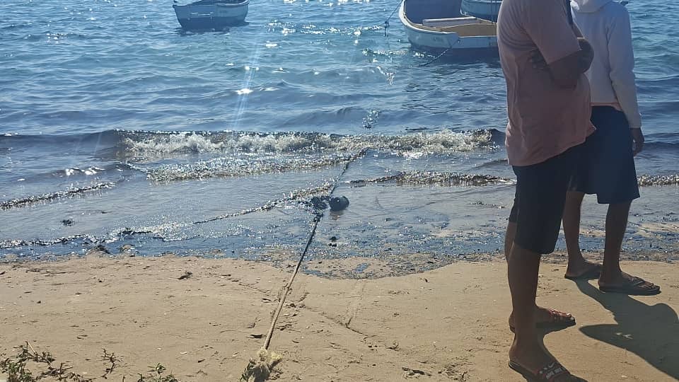 Los pescadores presumen que el derrame provenga de una embarcación dañada que permanece en la zona, según denuncias locales.